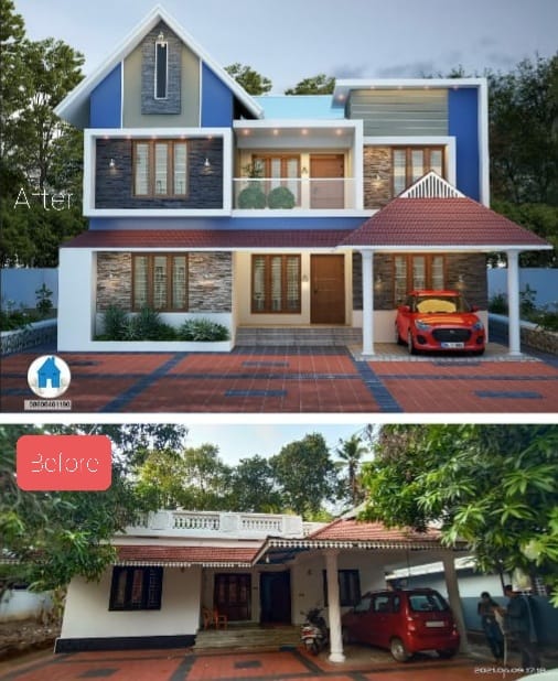 MIXED ROOF STYLE DESIGN OF 16 YEARS OLD HOUSE WITH FULL CHANGES IN EXTERIOR AND INTERIOR. FOR MORE DETAILS CONTACTS 8606461190